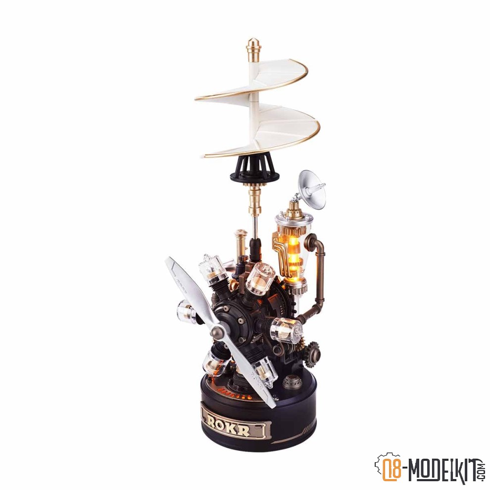 helix wings, a 6-cylinder radial engine, a 2-blade propeller, a steam engine
