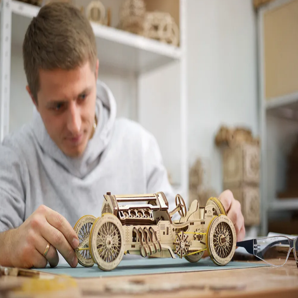 For the fans of vintage race cars and auto race track regulars UGears presents the latest intriguing addition to its vehicle collection: Ugears U-9 Grand Prix Car.