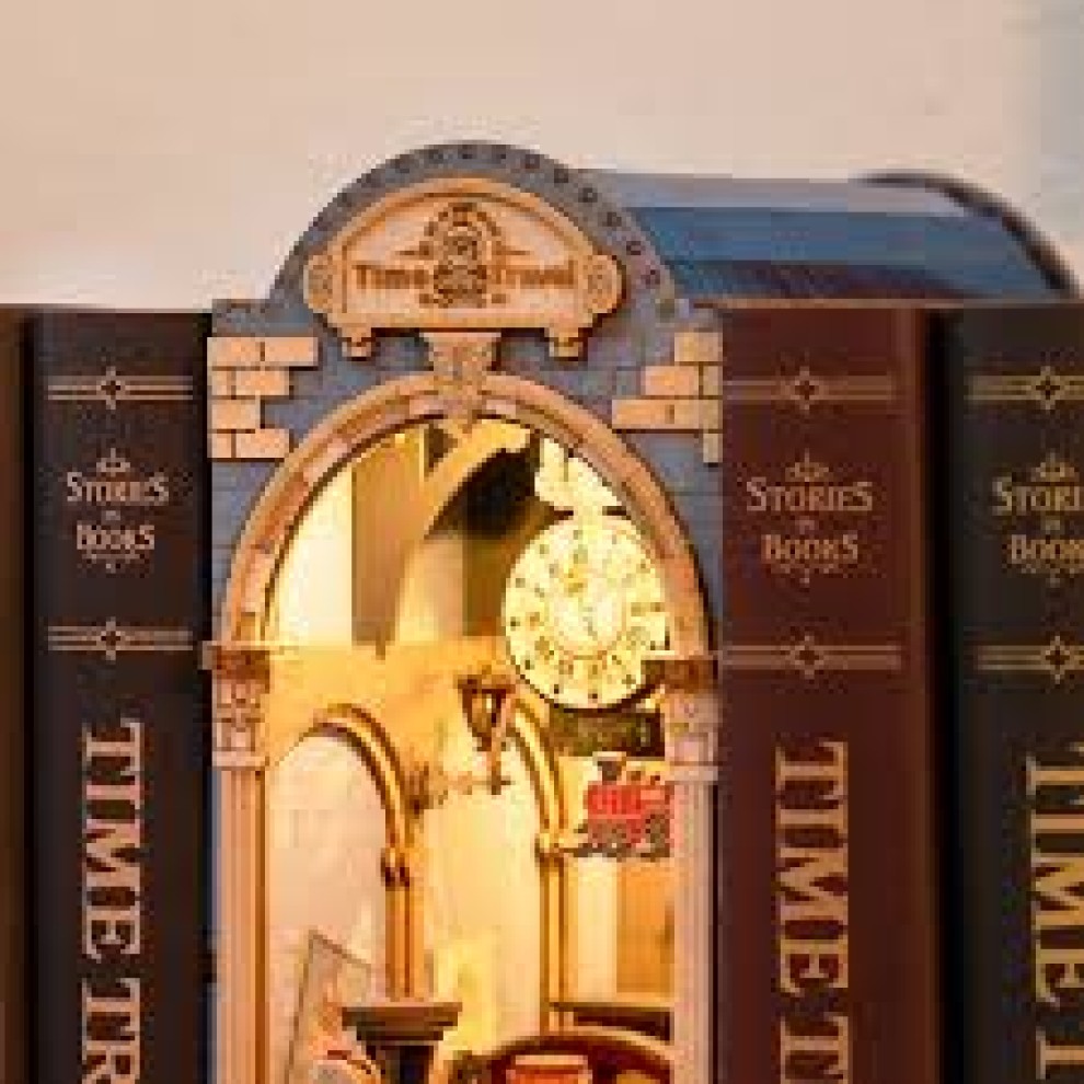 Rolife Time Travel Book Nook TGB04 هو مشهد مصغي لمحطة قطار على الطراز الأوروبي القديم، يتيح لك الدخول إلى عالم الزمن والمكان المختلفين. يتضمن ۲۵۸ قطعة خشبية مسبقة القطع، تعليمات خطوة‑بخطوة بالإنجليزية، أدوات مساعدة (مثل مفك صغير)، وسلسلة إضاءة LED دافئة لإضاءة ليلية. بعد التجميع، يصبح قطعة ديكور فريدة توضع بين كتبك.