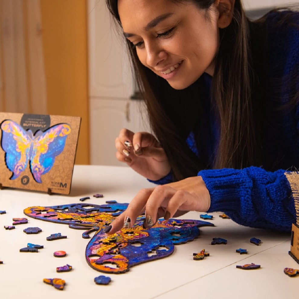 Let your mind wander to tranquil grasslands and verdant forests with these puzzle sets! Every piece of our wooden puzzles has a distinct fantasy shape, from various types of magic wand to star and magic animals. When finished, they create a breathtakingly beautiful work of art that you can hang in your living room.