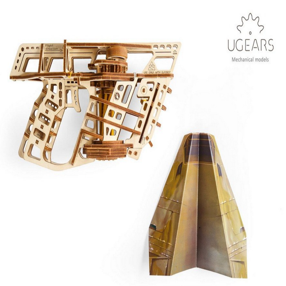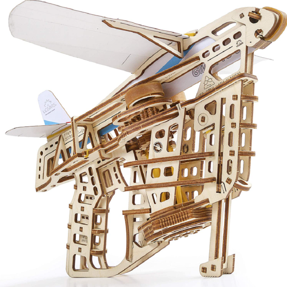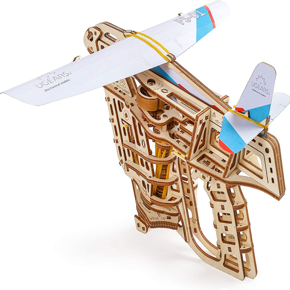 If you’d like to build your own aircraft, Ugears designers suggest you use relatively light materials: paper, cardboard, balsa, etc.