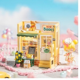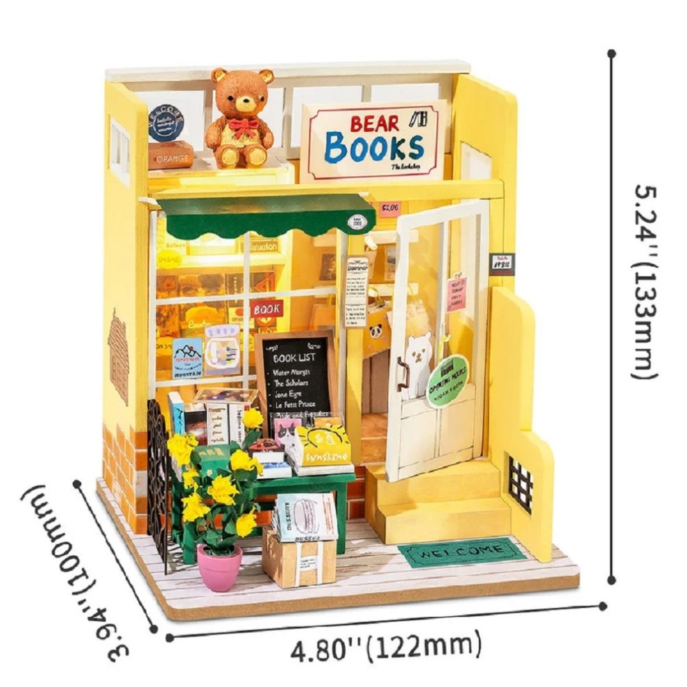 A lovely bookstore DIY miniature house kit you will enjoy its enormous details by crafting books, shelves, and other lovely furniture with your own hands. All pieces, parts and tools you need are included to ensure that you have a wonderful DIY experience.