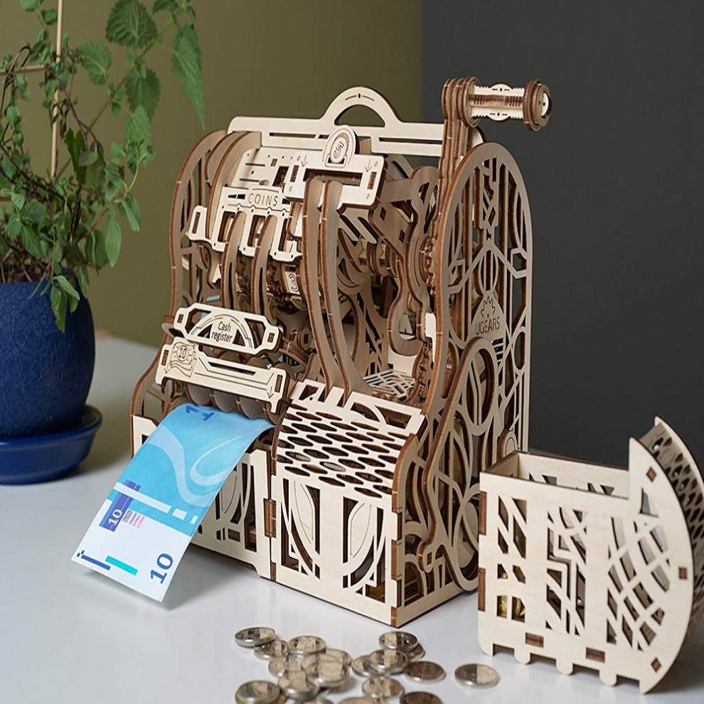 This clever mechanical money box may look outdated but is has some interesting modern features to boost its usefulness. Like its real-life prototype, this model has code-locked boxes for your coins and notes. For extra protection, you can continually update your personal code using the built-in code mechanism. You can ensure that your finances are kept secure. To keep track of your finances, this model is even equipped with a counter and an automatic coin detector. If you ever need to access your savings, enter your secret code to unlock the Cash Register and turn the key until the cashbox pops out. Accessing this cashbox will also reset the counter.