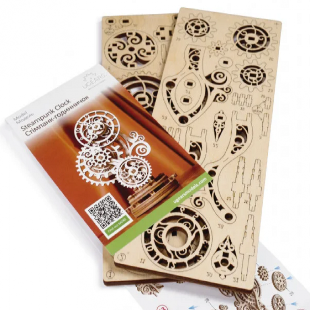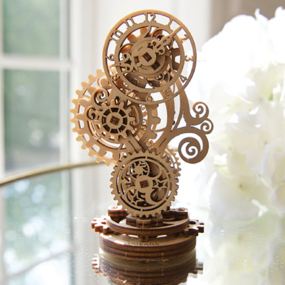 This model imitates a clock, and it is a beautiful, intricately designed imitation with a delicate body. It contains a mechanism that provides motion to the gears and allows for movement of the clock hands. Once built, this model will contain floral designs, stars, the sun and the moon. These beautiful lace-like ornaments will add a unique flair to your desk, table or wherever you plan to display the model as a centerpiece.