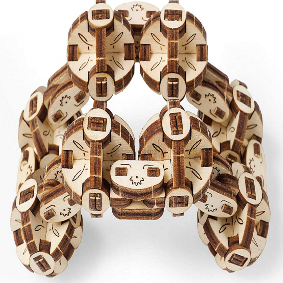 Challenge your spatial awareness skills and then destress with the UGears Flexi-Cubus model — the kit that offers twice the fun in a small package. When assembled, it forms a mechanical cube puzzle constructed of eight joint-connected spheres that rotate into different configurations. Each piece is printed with a skeleton face in a steampunk design. It’s the perfect way to improve focus and keeps hands busy.