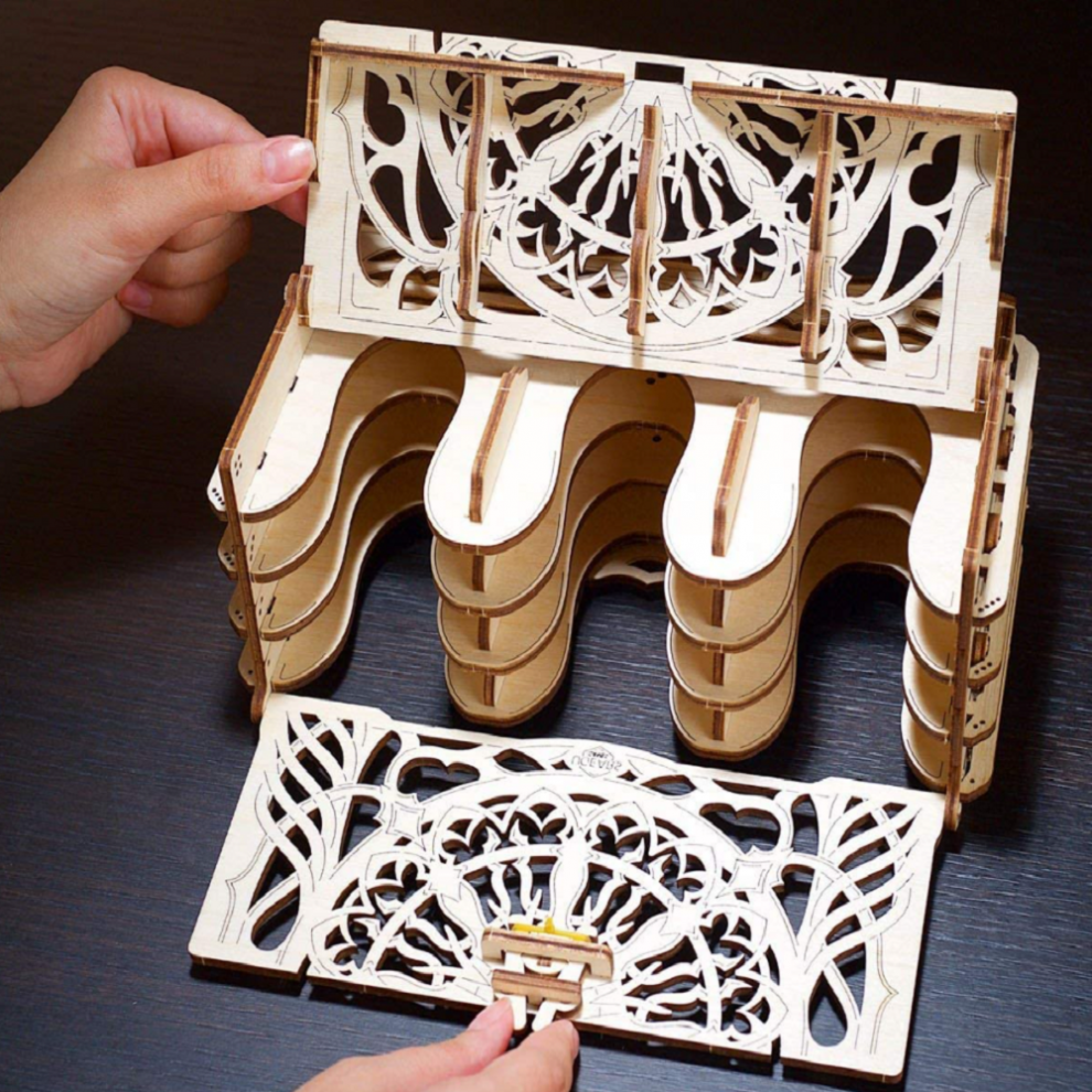 The Card Holder isn't just a storage compartment, though. It's also a puzzle! With easy assembly in about an hour, get the satisfaction that comes with creating something both beautiful and functional. The kit comes with 77 ready-to-build pieces which require no additional tools or glue. The perfect gift for the tinkerer in your life, the Card Holder will satisfy any idle hands without getting messy glue anywhere or forcing you to bust out the toolbox.