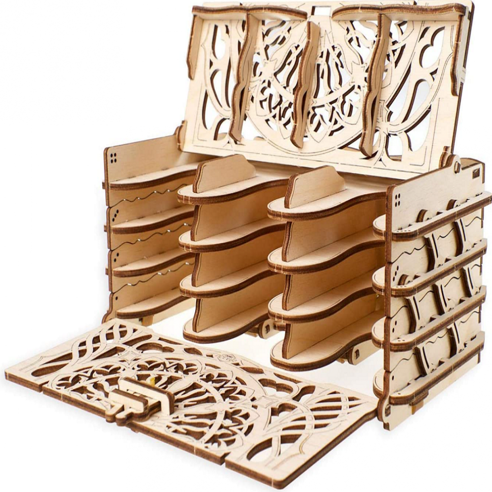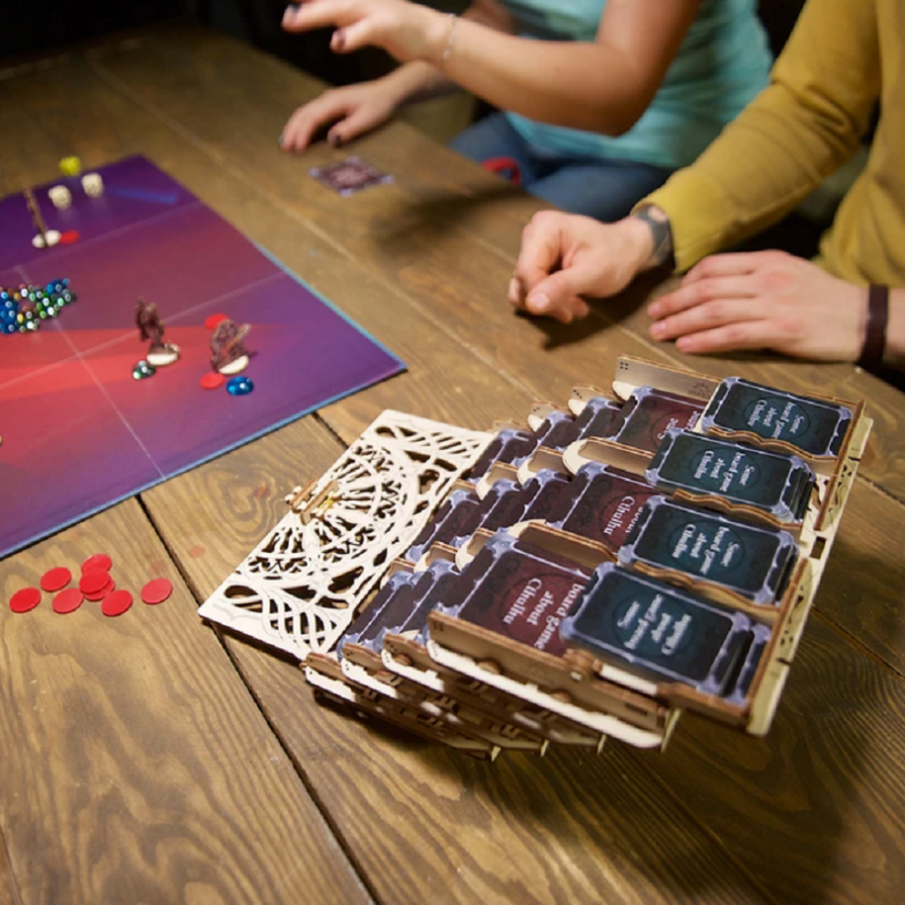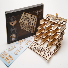 Pick a card, any card — or a whole pack! The UGears Games Card Holder stores up to 12 decks of playing cards, allowing easy access while saving space on your game table. No more rummaging through boxes or stacks on shelves to find the stack of cards you need. The massive capacity of the Card Holder is perfect for collectors who love stylized stacks of playing cards or for trading card game fanatics who want quick access to their favorite cards.