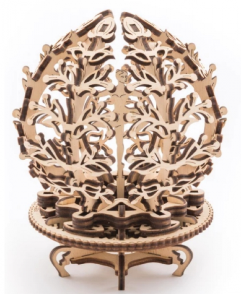 flower puzzle, the dancer inside peeking through the intricately cut leaves and