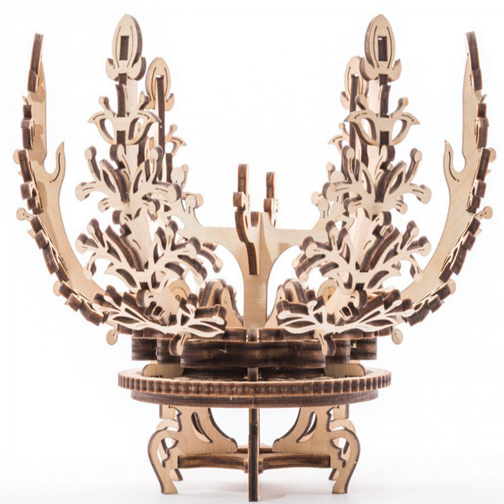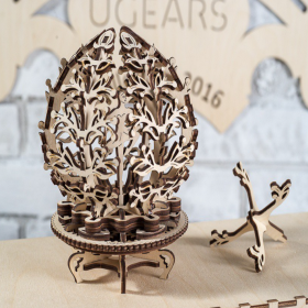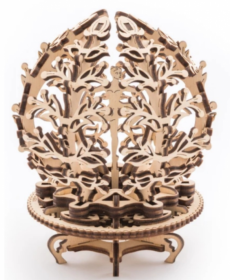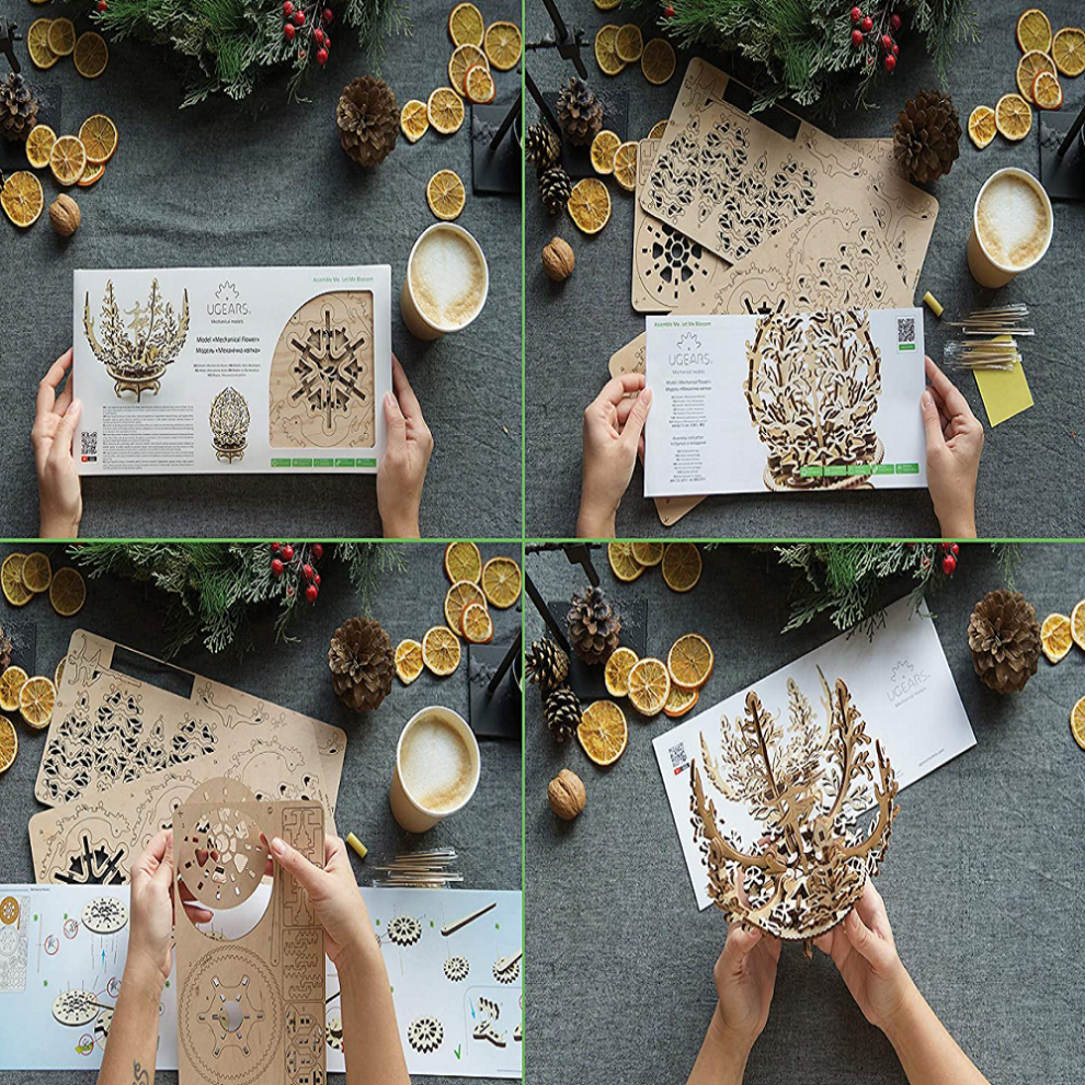 base; when the wheel is turned, the flower opens. When the wheel is turned in a